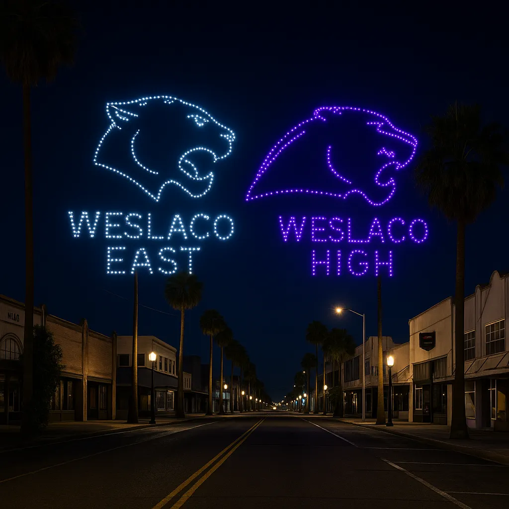 Veteran-led and mission-ready, we provide scalable drone light shows tailored for public and private clients across South Texas and beyond.